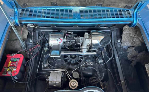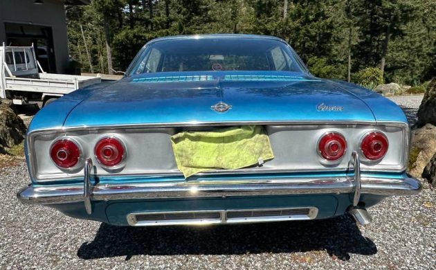 Considering the exterior paint shade, it is unsurprising to discover this Corvair’s interior is trimmed in matching Blue vinyl. It features a sports wheel on a telescopic column, an AM radio, and a sports gauge cluster with a factory tachometer. The overall presentation is impressive for a survivor of this vintage, with only the driver’s seat exhibiting any form of deterioration or damage. A brief online search unearthed replacement front seatcovers for around $460 per pair, although I’m sure that a more detailed investigation would uncover sets for a lower price. Beyond that shortcoming, this Corvair’s interior appears to have no further needs.