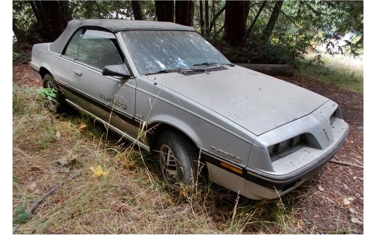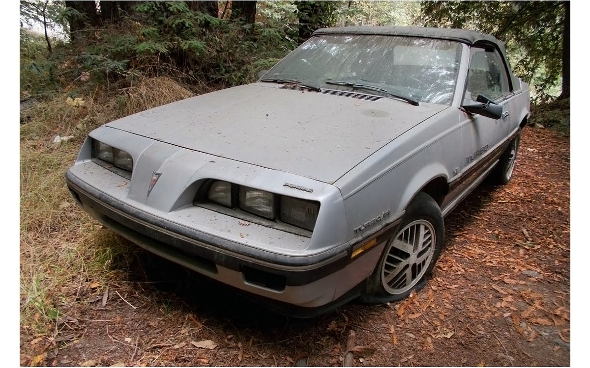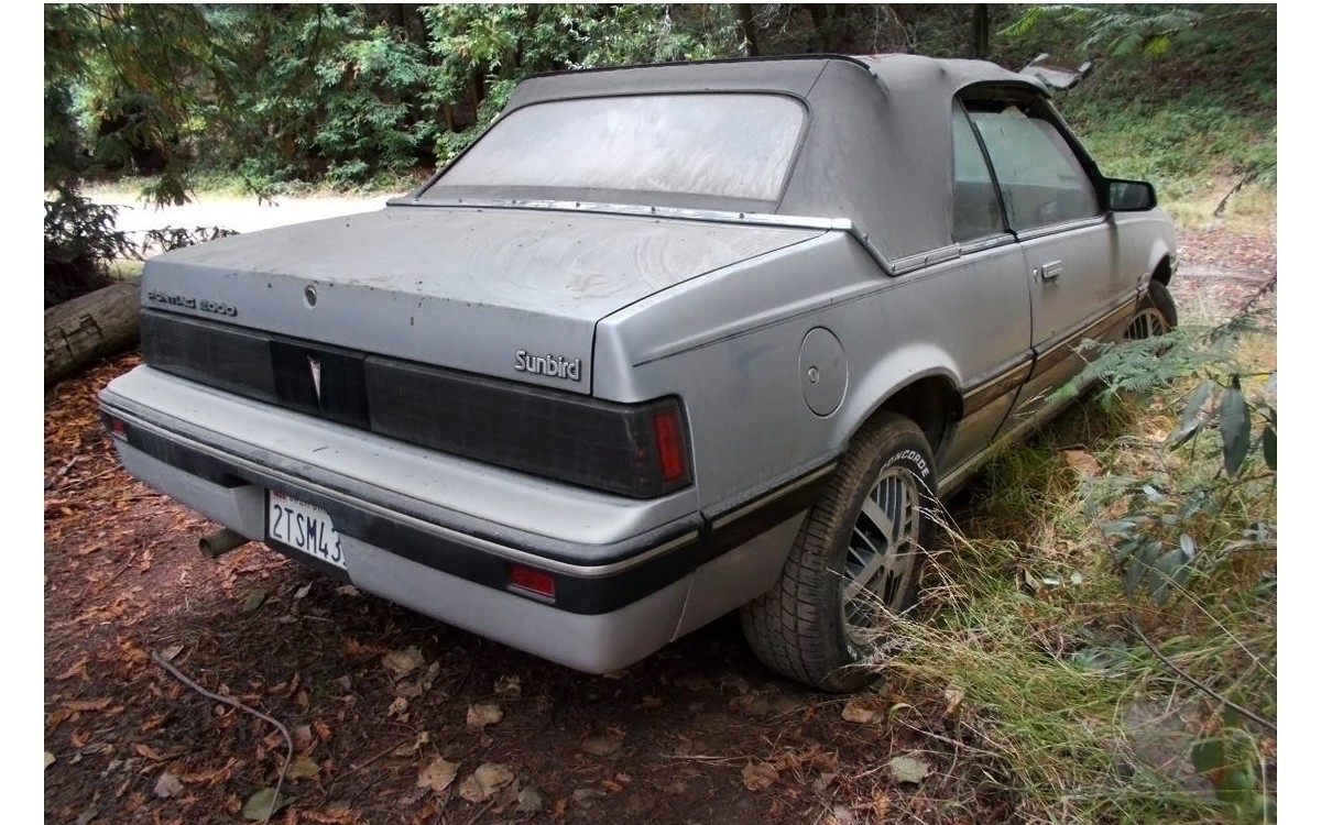Almost this configuration means that this one has an automatic transmission, unfortunately. A 5-speed would have been the clincher as far as checking boxes for me. The seller has a very unusual listing, I don’t know if these are mostly keywords or if something else is or was going on at the time that they wrote the ad: “Pontiac 2000: 1984, Turbo, SunBird, ‘Convertible’, 4-Cyl, Auto, Runs, Needs: Tlc, Registration, *Love, *Beach, *Babes! ride, comfort, mini, speed, road, tire, motor, living” Alllllllrighty then. Thankfully, the interior looks good other than dirty and/or faded carpets. I’m always worried to see a car parked in the weeds with the windows down. Did they just put them down for the photos, I hope? I sure hope that they haven’t been open for long.