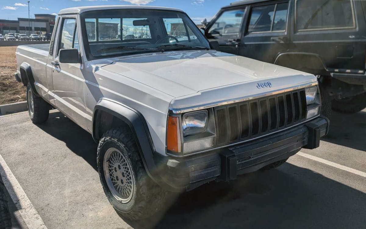 A “full-sized” hauling bed? Yes, at least for a small truck. I’ve been kicking around the idea of getting a new Ford Maverick, but I don’t need a four-door pickup and would want a bigger bed size. But I love the fact that they’re available in an AWD hybrid model. If it came in a SuperCab-size with a longer bed, I’d already have one. The bed on this Comanche, with an OEM Jeep rubber bedliner, according to the seller, would be more than long enough to haul my Rokon around, unlike the Maverick. I’m just assuming this truck has been repainted, but I don’t know for sure. I would want some period-correct Jeep wheels. I’m not sure if these would be from 1986 or not, I don’t see them in brochures.