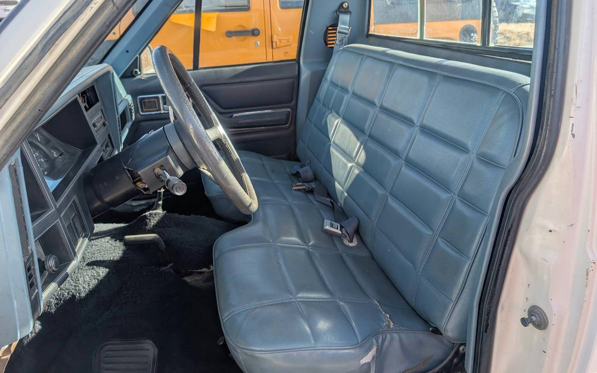 The interior needs a bit of help, but it looks nice overall. I believe this is a mid-trim X model – although it would have had rubber flooring, not color-matched carpet. The top XLS had carpet, but it also had other pieces that don’t show up here, so I’m assuming this truck has had carpet added at some point. The seat looks good overall, but it’s ripped a bit on the driver’s side, and the radio is missing. Maybe an upgraded touchscreen unit with a backup camera was on the to-do list? This truck has five new tires, by the way. Hagerty is at $9,000 for a #3 good-condition truck, just for the record.