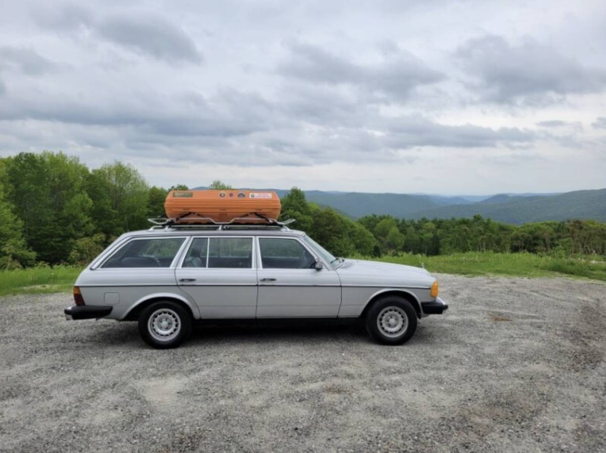 First, this is a great set of options. The color, Astral Silver, may seem commonplace today in a world of grays and blacks, but it’s not a paint code you see everyday on the W123 (I’d argue you’re more likely to see pale yellow with greater frequency than silver). The bodywork is pristine and the seller’s note that this 300TD spent most of its life with one owner until 2020 is a testament to how it’s possible to keep a car tidy even with 420,000 miles on the clock. And with that mileage you might expect to see other signs of cosmetic wear and tear, but you won’t find it here. The factory roof rack is a seriously rare piece of kit, by the way.