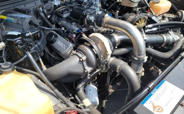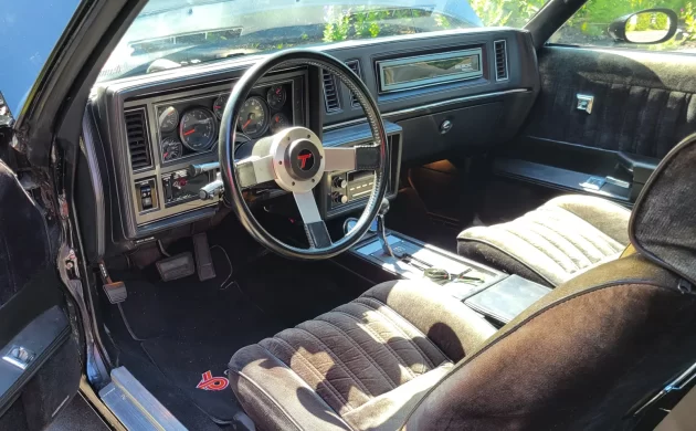 If we look under the hood we find a modified 3.8-liter V6 (LC2) intercooled, turbocharged engine. This engine was a high tech masterpiece of sequential fuel injection (SFI) and forced induction when it debuted. For 1987, Buick bumped the official rating to 245 horsepower and 355 lb-ft of torque, though everyone at the drag strip knew those numbers were conservative. The Garrett T3 turbocharger has been replaced and the seller states that both the engine and transmission have been rebuilt. The engine is connected to the 200-4R four-speed automatic, which in stock form, features the specialized “BRF” valve body calibration exclusive to the Turbo cars. The EGR system has been removed and the engine has two fuel pumps. One that feeds the engine up to 10 psi and another than kicks in after that. The engine management system was replaced with a 18 psi TT PROM chip. Power output is not stated but it should produced GNX levels of horsepower or more.