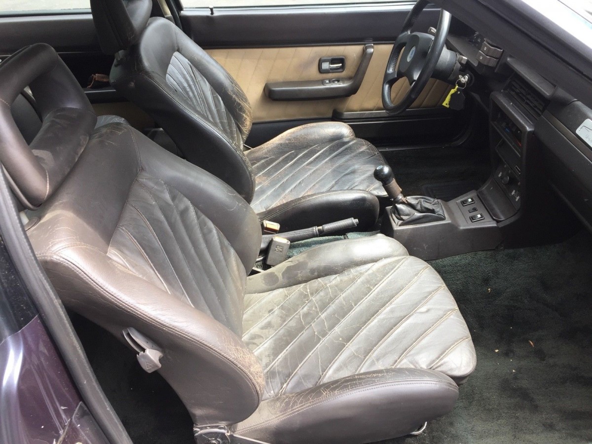 Interiors featured leather bucket seats with thick bolsters, and while a bit tired, they remain in serviceable condition here. The door panels are tan, suggesting there may have been a different color in the cockpit at one point in time; as the seller admits, the seats have been swapped out from tan to brown. The e-brake doesn’t work and the dash is cracked, the latter being a common fault with older German cars. Fortunately, rust is virtually non-existent.