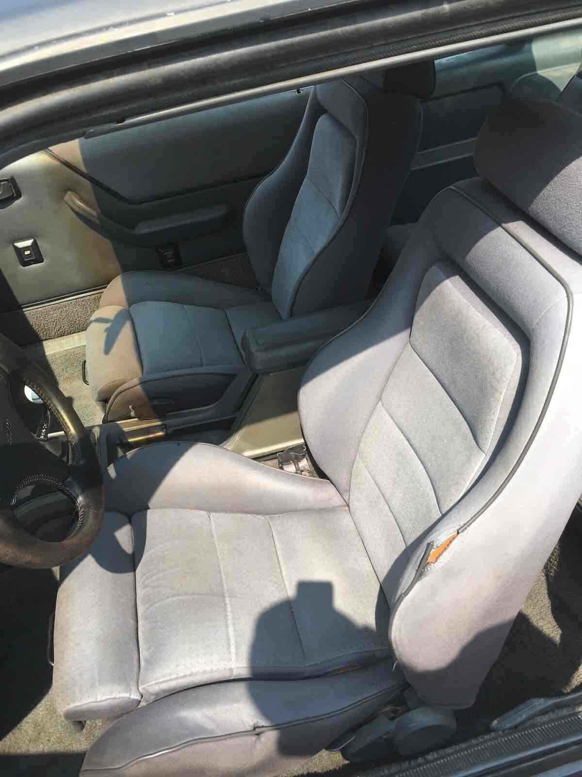 If I’ve got my interiors straight, the black car has the more typical gray cloth and looks to be in great shape with only minor splitting on the piping. If the black SVO was the driver of the two, perhaps it was parked inside or otherwise kept in the shade; it seems likely the white coupe was left sitting outside either as a parts car or waiting for restoration. The good news is the seller seems confident both drivetrains are good, so at least you’ll be leaving with two running SVOs should you go to pick this pair up, and while one interior is past the point of using as-is, the seats could at least be good cores for rebuilding. The dash in the white car is likely past rescuing, however.