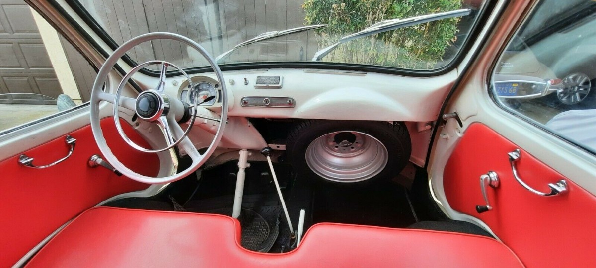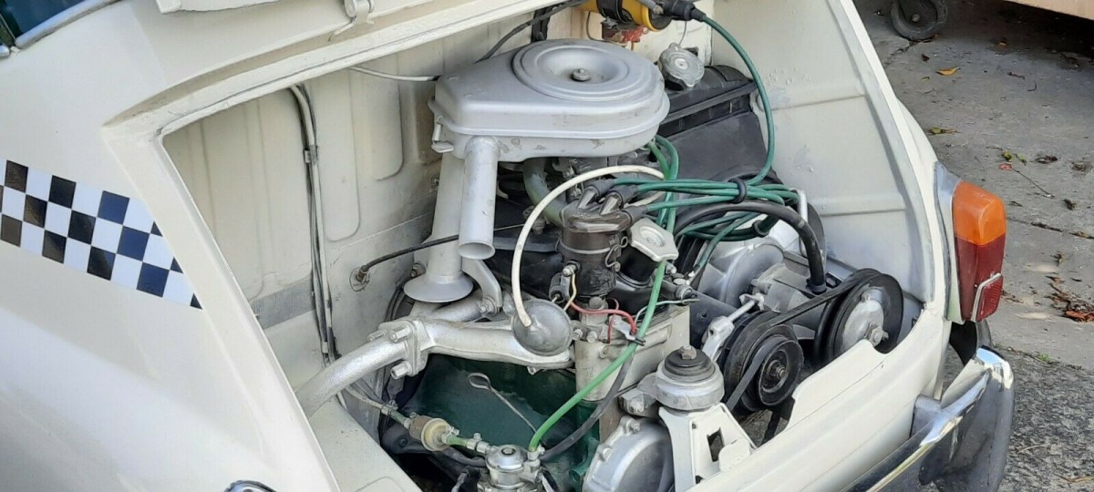 European manufacturers during the period from the 1940s until the late 1960s were heavily focused on producing light and space-efficient vehicles. This was, in large part, motivated by the fact that raw materials for car production were scarce following the end of World War II. Finances were also tight, so there was no room to be lavish with vehicle design or construction. It was this line of thinking that gave rise to cars like the original Mini. This was a triumph of packaging efficiency, featuring a front-engine/front-wheel-drive configuration. With the 600, Fiat went in the opposite direction, opting for a rear-engined car with rear-wheel-drive. Tiny engines were the order of the day, and while vehicle performance wasn’t lightning fast, it was still considered to be adequate. The Fiat 600 Multipla was initially offered with a 633cc 4-cylinder engine, but this was upgraded to a 767cc unit in September of 1960. With this upgrade, the model name received a change from 600 to 600D. This little dynamo produced 32hp, which found its way to the rear wheels via a 4-speed manual transaxle. Of course, this vehicle was no rocket, but it could reach a top speed of 75mph. Generally, the engine bay of this Fiat looks okay. It seems like some of the paint preparation and application has been left wanting, with the paint within the engine bay having a very rough appearance. The fuel lines have been painted over in some spots, and are bare in others. The VIN tag has a significant covering of overspray. Even the paint on the air cleaner is thin and almost transparent in many places. I have included a YouTube video at the bottom of this article. It provides a walkaround of the vehicle, plus a short test drive. During the video, there are no signs of any squeaks, rattles, or odd noises. The engine sounds nice, and the car appears to drive smoothly.