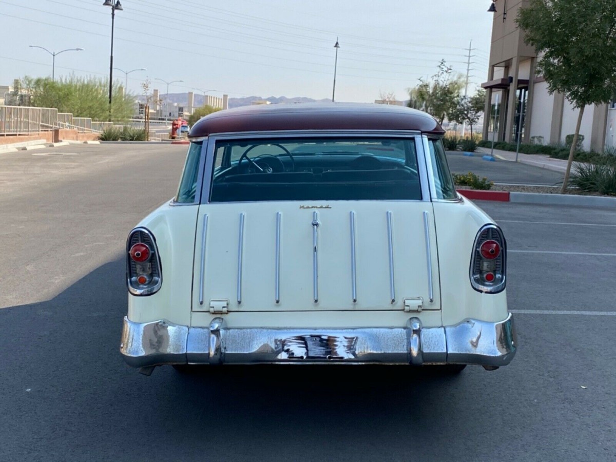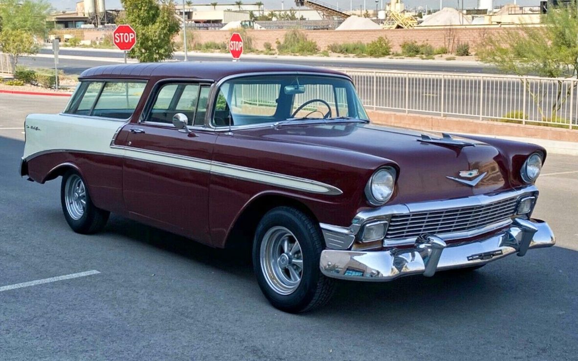 I would be surprised if many of you reading this post have not considered having a classic car as a daily driver. Mental images of cruising around in a reliable, somewhat modernized classic are common in my household, and sometimes they have even come true. Often, though, the reality of dealing with 50-year old mechanicals and electrics end up sidelining those dreams. This 1956 Chevrolet Nomad appears to be a way to realize that dream relatively painlessly! It’s listed for sale here on eBay where enthusiastic bidding has already driven the price up to $27,500 as I type. There’s not much time left, so be sure and check out the listing now if you are interested. The car is located in Las Vegas, Nevada.