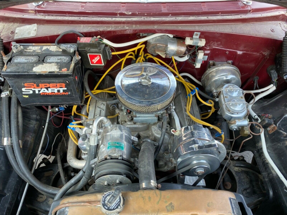 The underhood chrome and polished parts could benefit from a good cleaning, but it’s encouraging to see the air conditioning in place for those of us in warmer climates–we’re told it blows ice cold! You’re looking at a 350 cubic-inch V8 of unknown origin, but the seller tells us it runs well with no bad noises. Backing it up is an automatic transmission. It’s nice to see features like the dual-circuit power brakes for a daily driver as well. I realize some of you would rather every car be left completely stock, but I can easily see a spot for a custom-like this one in a lot of garages.