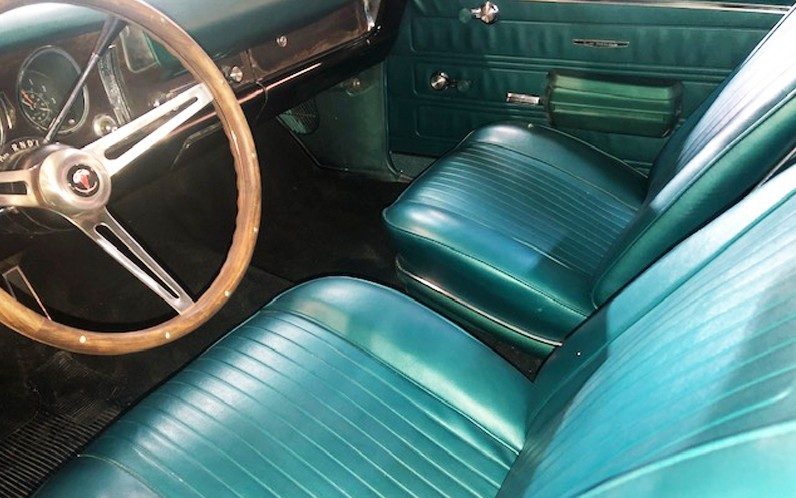 Listed as a 25K mile estate sale example, there is no corroborating mileage documentation provided. The what appears to be Code K, Meridian Turquoise finish is bright and deep, it shows beautifully, so much so that it looks more like a modern two-stage finish than it does GM’s “Magic Mirror” lacquer from days of old. The trim and chrome still have a strong luster and there is no sign of rust or crash damage. The tightness of the shunt lines is notable for a car of this era.