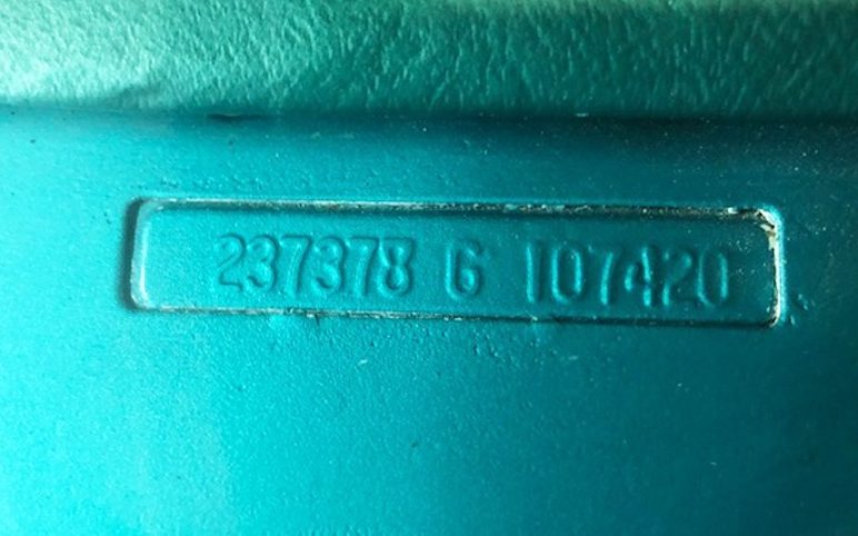 Of note, inside there is a black painted lower dash-facing positioned beneath a turquoise finished upper dash panel. Based on the appearance on the dash topped VIN plate, it appears that, for some reason, it has been repainted. That said the turquoise-hued dash pad is in fine nick.