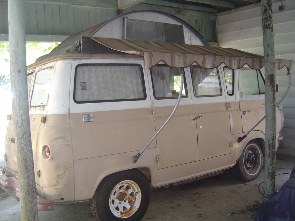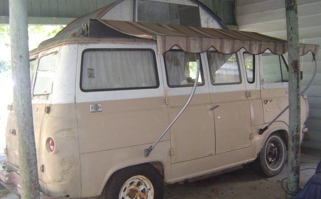 The Ford Econoline debuted in 1961 as a derivative of the new Falcon compact. It came in the form of cab-over passenger and cargo vans, and even a pickup (like the Chevrolet Corvair). During the first generation, to compete with the Volkswagen Transporter, Ford partnered with Travel Equipment Corp. to develop the Family Wagon, a pop-up camper with a “turtle top”. This example is from 1964 and is well-worn, but perhaps rebuildable. Located under a carport in Little Rock, Arkansas, this nifty project is available here on craigslist for $2,950.