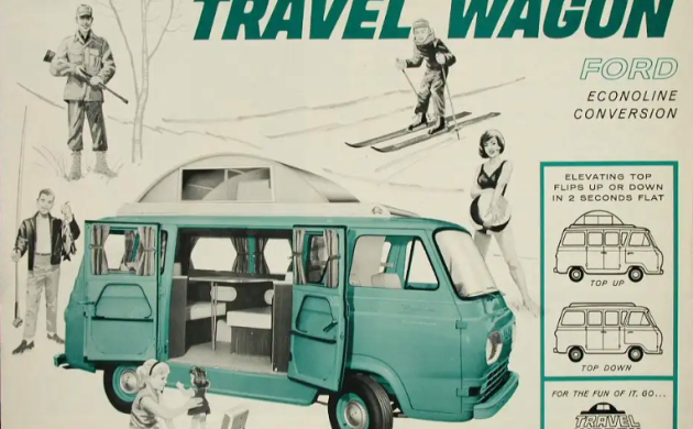 We assume this Family Wagon is a conversion from Travel Equipment and not something someone cobbled together themselves. It was based on the Econoline passenger van, as it comes with side windows rather than steel panels. These fun campers are said to have been built to sleep up to six passengers, so maybe all the comforts of home were present. A small air conditioner hangs out one of the side windows, so we assume 12-volt power was arranged.