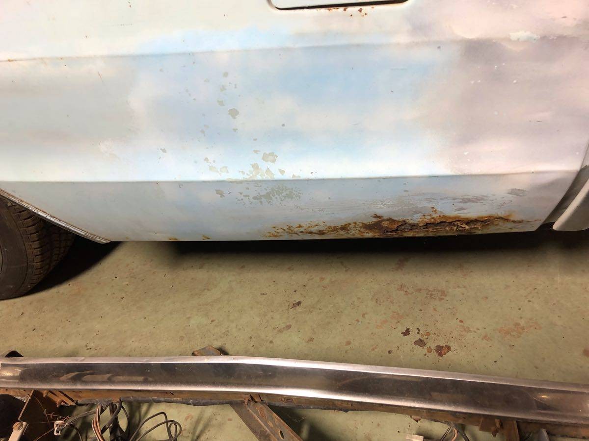 Introduced in 1966, the Charger was never intended to be an out-and-out muscle car, but with the optional Hemi engine, there was no doubting its performance credentials. Where it differed from conventional muscle cars was in the fact that it tended to be luxuriously equipped than its rivals. This one is a solid car, and the only rust of any note is this spot on the driver’s side lower quarter. The rest of the Charger (well, what we can see), looks to be encouragingly solid. The Light Blue paint has certainly seen better days, so a repaint for the Charger is definitely on the cards.