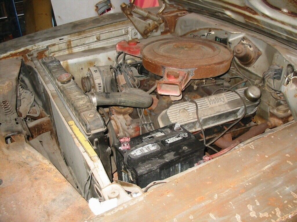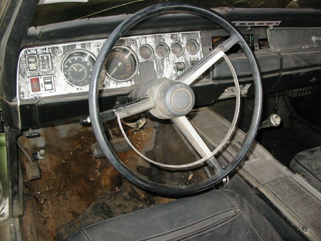 Most of the black interior components are present, but like so much of the car, it will need a complete restoration. Everything is showing the sort of deterioration that you would come to expect from a 51-year-old car that hasn’t been meticulously maintained, so there is going to be some work here. The dash, gauge cluster, center console, and wheel all look like they would restore okay. The car will definitely require new covers on the seats, new carpet, and new upholstery on the door trims. So, there’s a bit to do there.