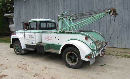 The most intelligent swap would be for one of the great IHC DT466 mechanical injected engines ( that were an option in this chassis) but it would also be nessisary to change the rear differential ratios to accommodate the lower RPM engine, an appropriate transmission to work with the heavier clutch and torque engine…….in short. Start with a truck that already has that stuff and if you like install a wrecker body. They are cheep, have been made obsolete by the insurance companies that don’t want to write policies for them any more.