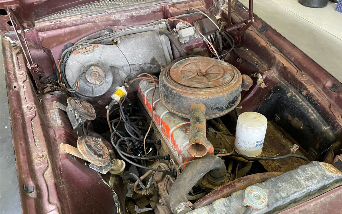Was this sitting in a field with the windows down? The floors are basically gone and the rest of the interior has a lot of moisture and mildew damage. I was sure hoping to see a V8 under the hood but oh well..