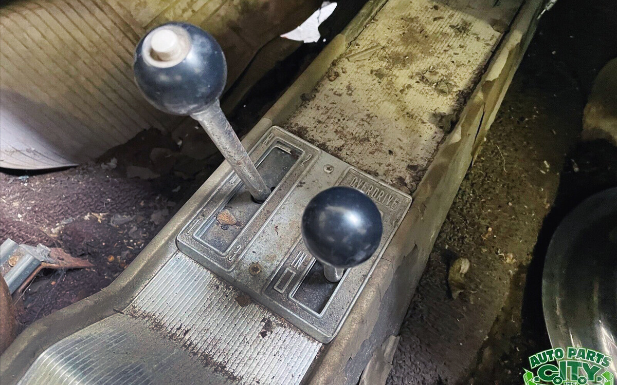 The headliner and door panels need help as do the seats, but all of that should be able to be repaired by almost any good upholstery shop. The seats look good overall both front and back, but, the incredibly rusty floorboards will need a lot of help first. The big thing with this car, other than being a two-door hardtop, is the Twin-Stick shifter in that center console.