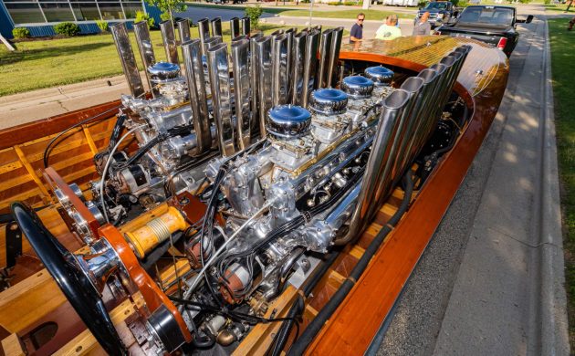 Wood made ten of these speedsters, and the seller claims he favored this this eighth unit, calling it “the finest boat he (Gar Wood) ever built, barring none … my masterpiece.” The twin 1113 cid (18.2L) DOHC V16s replaced the previous boat’s pair of Packard V16 motorcar mills. These custom creations by engine master Harry Miller devour a cocktail of air and fuel prepared by four Holley carburetors each. While we can surmise the Holleys are not original, the engines are! No other surviving Garwood Miss America can equal that boast, according to the listing. Miller’s magic grossed 930 HP per side, good enough for 104 MPH on the Harlem River in New York, according to the seller, virtually guaranteeing you’ll get to the yacht club on time, fast enough to net the Harmsworth Trophy twice.