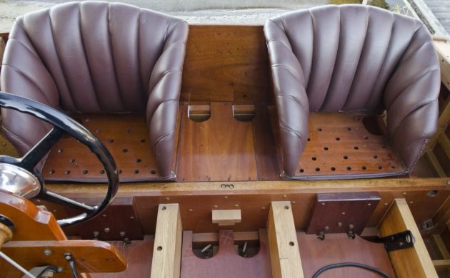 Mahogany seat bottoms keep you connected to the boat’s visceral undulations. Coax a passenger into signing the necessary waivers and hold on tight. Once you crank up this 1800 HP death spear, those holes might be draining more than errant lake water. This boat’s exploration of the fine line between excitement and death can’t be properly appreciated by modern video game-trained steering wheel holders who think they’re Max Verstappen every time they turn off traction control. Not even close. Do you have what it takes to pilot this floating mahogany near-death experience?