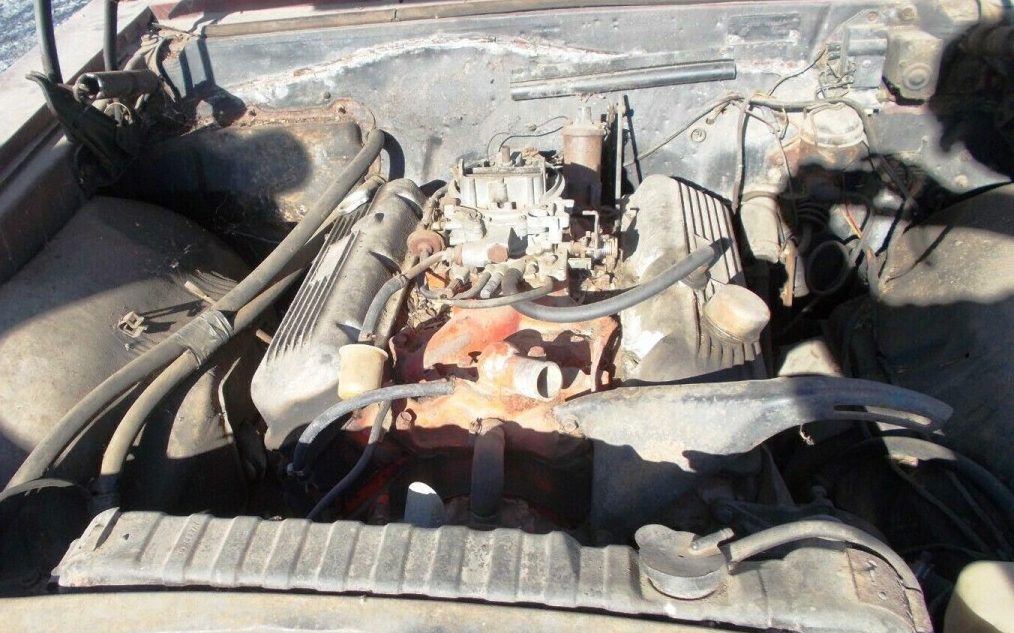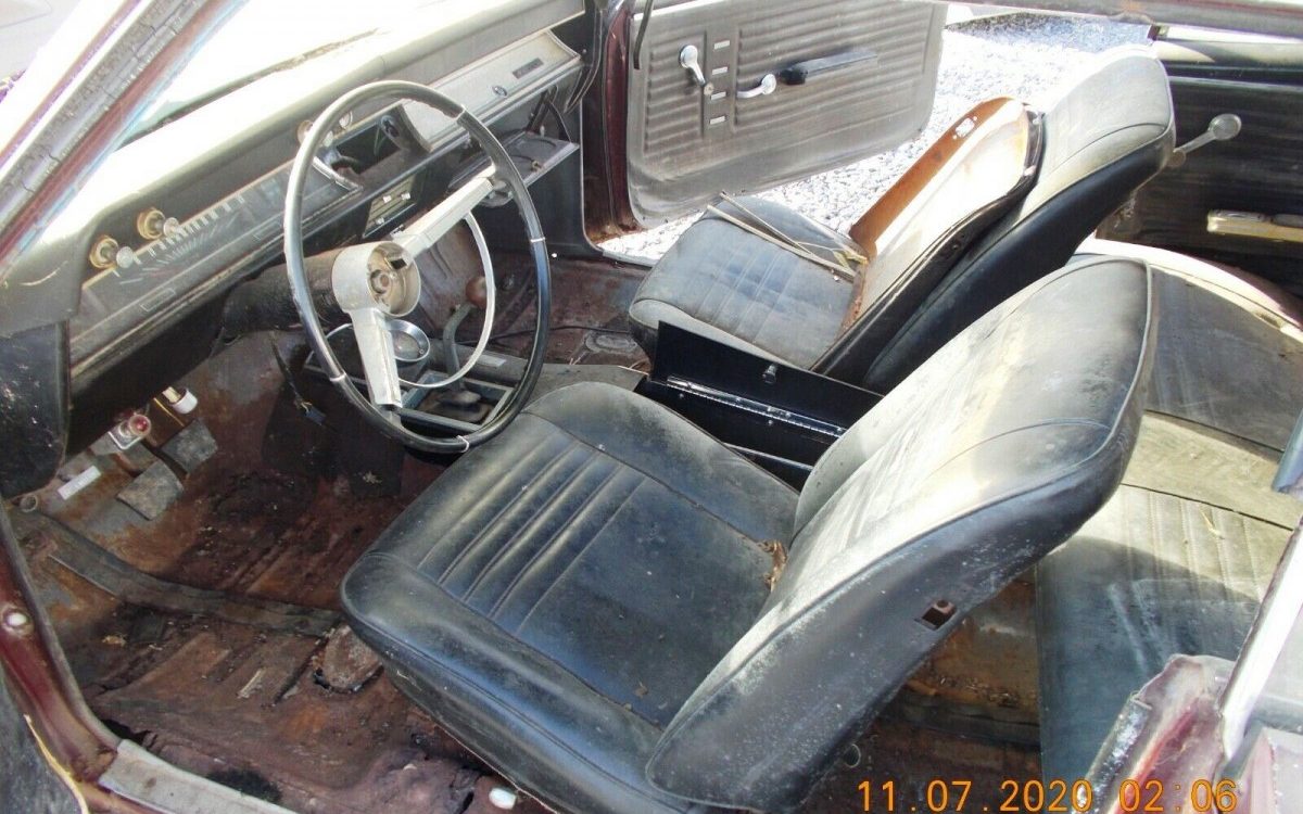 Those seats might actually clean up well enough for a ride down the road, or better! The console is a bonus too. Originally Marina Blue, the SS wears what’s left of a thorough color change to burgundy.