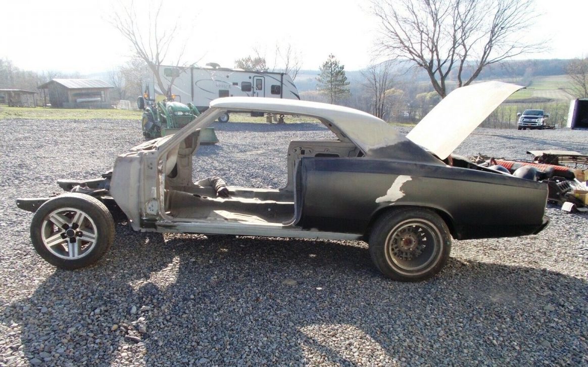 There’s no faster way to become a ’66 Chevelle collector that buying two at the same time! This pair of aces in Rushville, New York could enrich the hand of the gambler willing to take on two cars for a single price. Two 1966 Chevrolet Chevelles go to the high bidder in this combination sale. The SS396 four-speed shown here is fairly complete but needs everything, and the non-SS car is disassembled and partially restored with a ton of metal fabrication done. The SS comes with a non-original V8 installed and its numbers-matching engine in pieces. The pair shares a listing here on eBay where at least seven bidders have elevated the two-for-one bids above $24,000.