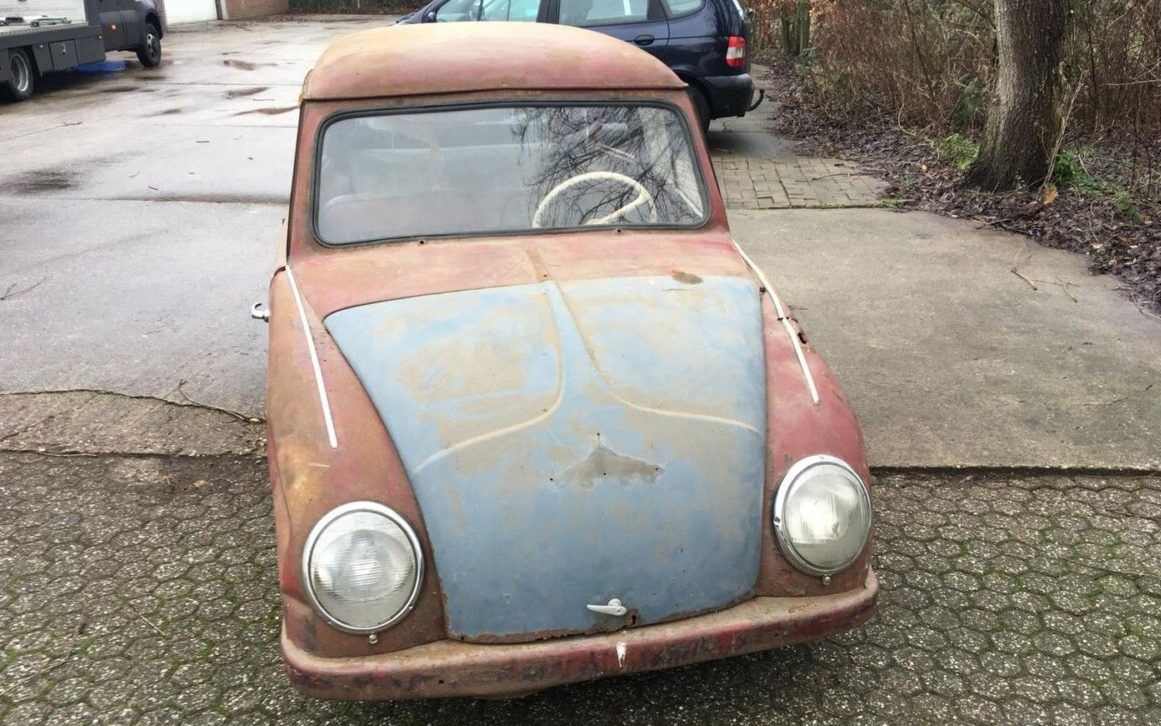 Under the bonnet is an 18 HP, 500 CC, two-cylinder, water-cooled engine driving a four-speed manual transaxle. The engine was sourced from Heinkel and the top speed was claimed to be 60 MPH. The seller mentions that extra parts are included, along with an “extra engine gearbox sheet” (a service manual maybe?). What’s not stated is whether or not this little bugger operates on its own.