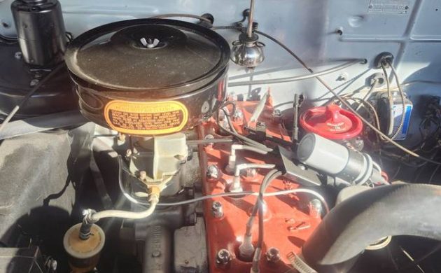 Power is provided by a 100 HP, 217 CI, in-line, flathead, six-cylinder engine, and the seller claims, “Runs and drives excellent…. motor compartment is very highly detailed.” No doubt, it is a sharp-looking environment. A three-speed manual transmission (three-on-the-tree) is responsible for gear changes.