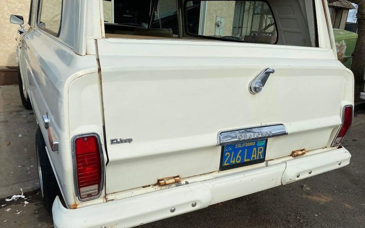 The bodywork of this Cherokee is claimed to be 99% rust-free and super straight. The included images bear out that claim. There is some minor surface rust showing on the front painted bumper, and some emanating from the tailgate hinges but it is a clean and straight presentation; this is an exterior that could really be left as is. There is a single image of the underside included and from what can be seen, it appears to be sound, there is surface rust but nothing invasive. The aftermarket aluminum wheels are a nice addition, though they, and the tires, appear to be undersized compared to what would have been original and better suited for off-road escapades.
