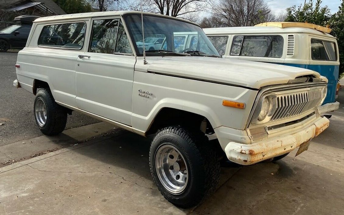 With the imminent return of Jeep’s Wagoneer and Grand Wagoneer, I thought it appropriate to take a look at an early version of the full-size Jeep SJ that helped launch the SUV craze, specifically, a 1974 Jeep Cherokee. This example is going to need some help, so let’s see what we have here. This Jeep is located in Chico, California and is available, here on eBay for a current bid of $2,575 with nineteen bids tendered as of this writing.