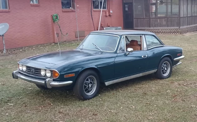 Fortunately, this Stag has a recently rebuilt engine, including “new timing chains, head gaskets, tensioners, gaskets, seals, valves, valve guides, water pump, fuel pump, carburetor, coil, alternator, starter, etc.” It has new tires and apparently runs, drives, and stops well.