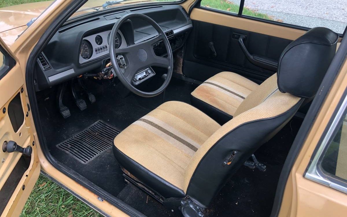Since this Fiesta is a Nevada car, we are told, “Nevada car so min to no rust, one small area on rear hatch exterior”. as well as, “Completely stock original paint and sport decals, only piece missing is driver door card” It’s brownish/tan shade is definitely a ’70s color. It actually presents pretty well with minor contusions and a slight dent in the passenger side fender and missing side marker lights, front right and rear left. There is some minor surface rust in places and Oldmotors did state that this generation of the Fiesta is rust-prone. This Fiesta definitely has the lines of a late ’70s econobox, it looks like a lot of other cars from that era.