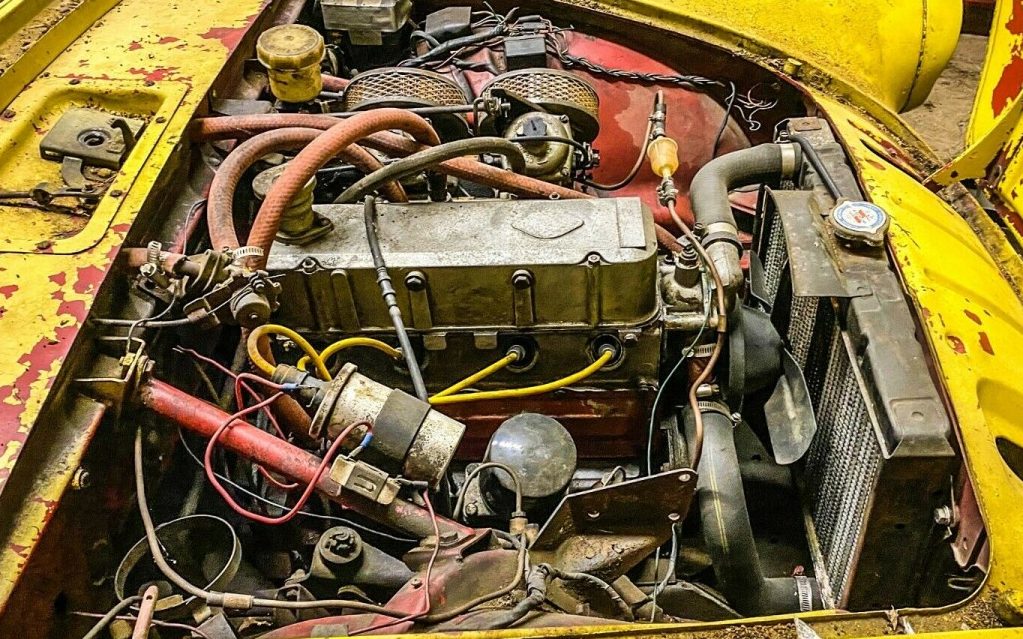 The seller states, “…you buy the yellow with a title and get the white one included with a bill of sale only unless we locate that title. I believe white one is 1961“. He later retracts the 1961 estimate and refers to Alpine #2 as a ’66 or ’67 model. The white one actually looks like it’s in better nick than the ’64, principally because of the lack of the obnoxious paint job. Sure, it has its issues too but aesthetically, it appears as if it needs less attention. Its 93 HP, 1.7-liter in-line four-cylinder engine also seems complete, except for the missing air cleaners. Also, note the ancient 13” Goodyear Polyglas tires!