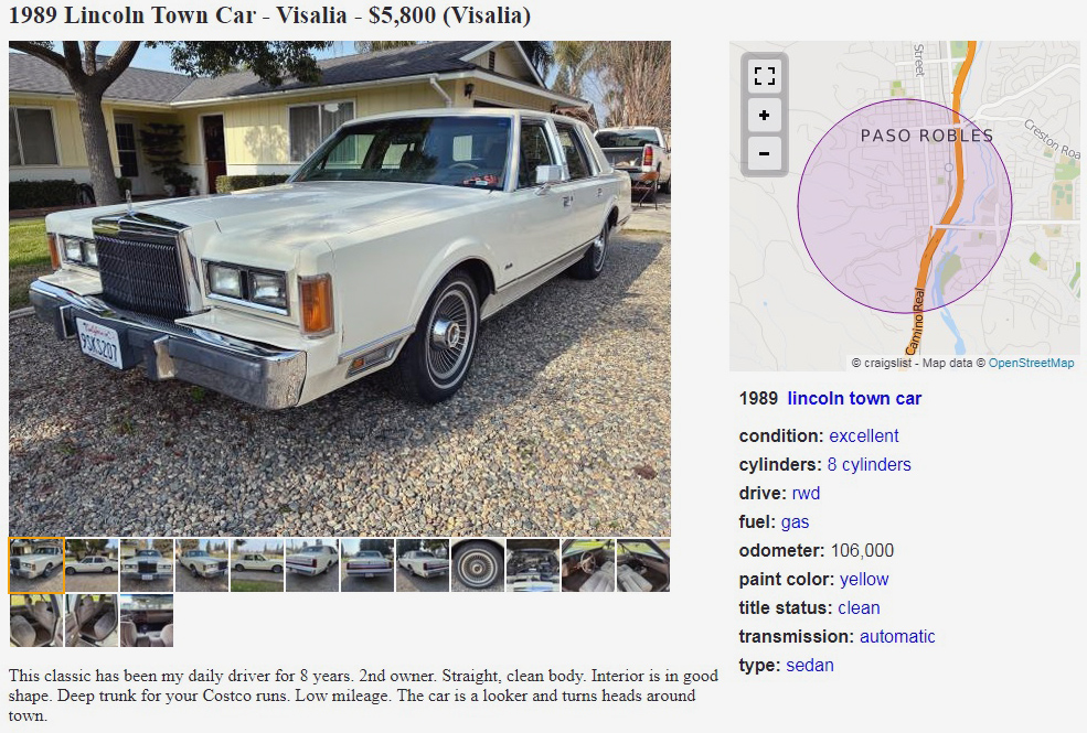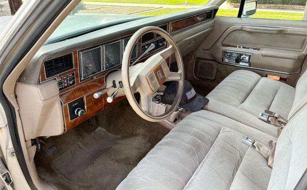 An engine photo in a craigslist ad is a bonus, and this clean tangle of hoses and wires is a Ford-sourced 302-cu.in. OHV fuel-injected V8, which was rated at 150 horsepower and 270 lb-ft of torque when new. Passing silently through a four-speed automatic, power is sent to the rear wheels, and the seller doesn’t say how it runs, but I’m assuming all is well. Hagerty is at $4,800 for a #3 good-condition car; how much is this Town Car worth?