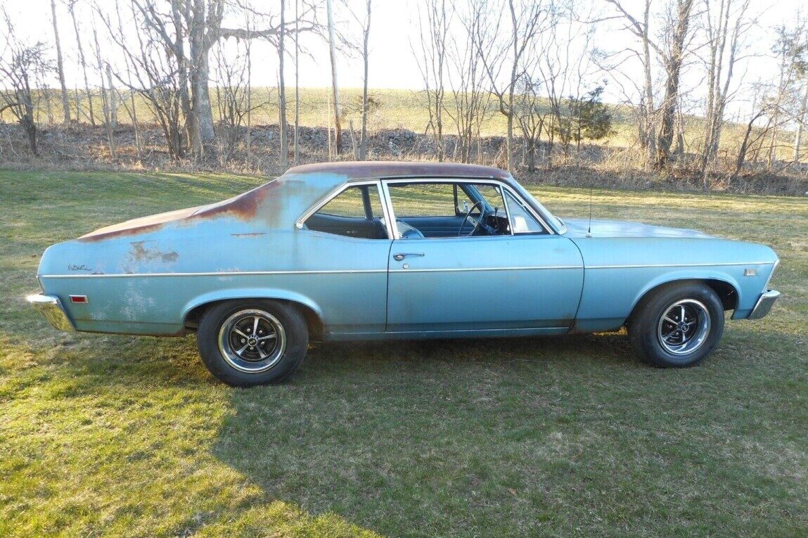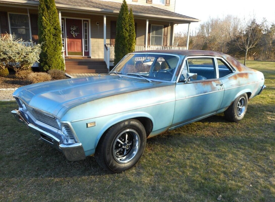 The seller is a dealer who purchased this Nova from its original owner. The listing doesn’t explain its history, but it appears it never underwent any restoration work. Its Grotto Blue paint is past its best, with chips, scratches, and emerging surface corrosion. There is rust developing in the lower fenders and rear quarter panels, but the underside is rock-solid. I can’t spot any significant dings or dents, and the panel gaps are among the most consistent I’ve seen on a Nova of this vintage. The winning bidder might opt for a paint and panel restoration. However, addressing the penetrating rust, treating the corrosion to prevent deterioration, and preserving this car’s survivor status is a valid approach. The trim and glass look acceptable for a driver-grade vehicle, but the wheels are a recent addition. The original wheels and their factory hubcaps are included for those seeking authenticity.