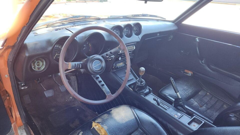 The interior betrays the better condition of the exterior, with nearly every surface calling out for attention. The seats need new upholstery, the carpets are faded, the dash is cracked to the point of nearly splitting apart. The seller reports that the glass is good, however. Nissan gave its export market “Z” interiors slightly different dimensions than its home market “Fairlady”: the steering wheel was set slightly closer to the dash and the seat rails were set farther back in American cars, to account for our rangier dimensions.