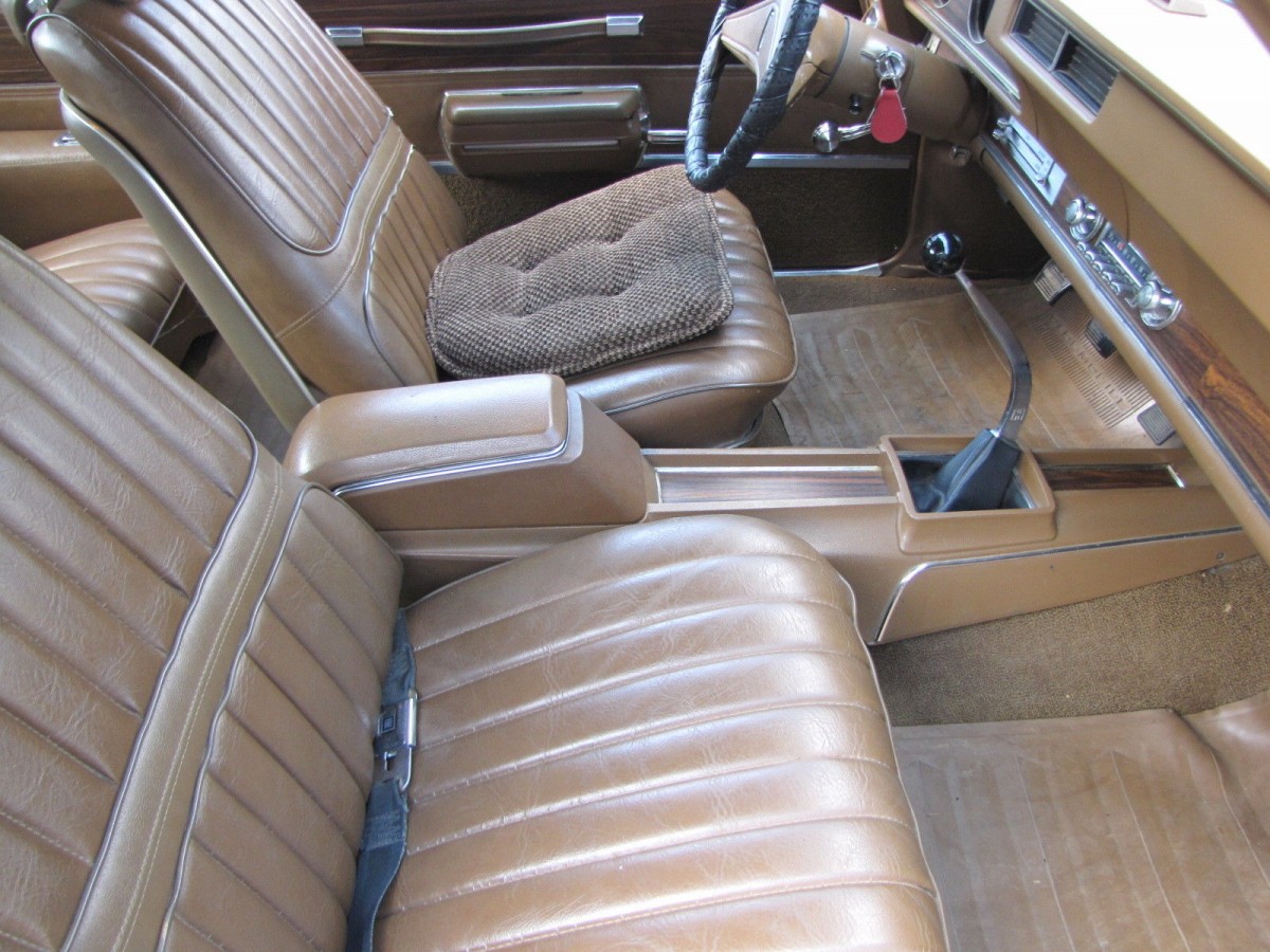 The interior is generally in quite good condition. The dash pad is uncracked, and the dash itself is original and unmodified and houses a full range of instruments including a tachometer. The rest of the trim and headliner look really good, but there is some wear and discoloration on the armrests.