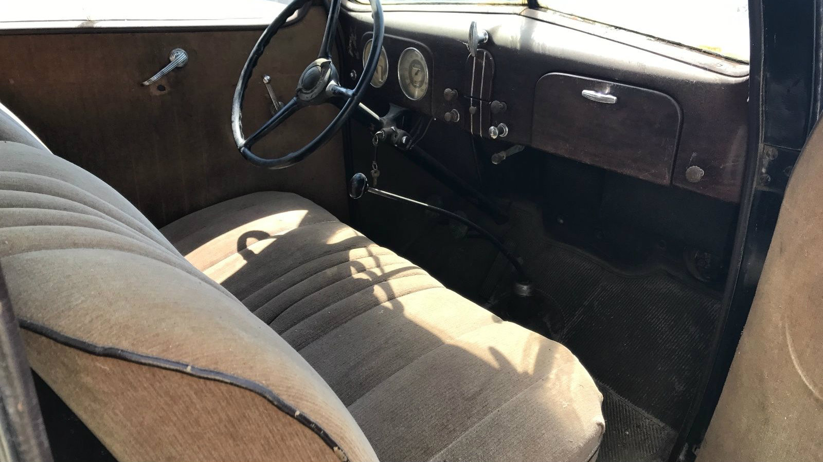 Could this be the original interior? It certainly looks like it could be, although an expert would have to tell me for sure. Regardless, it does look age-appropriate. The seller has made no effort to clean the car at all and obviously, some work will have to be done to make it run–but what an opportunity!