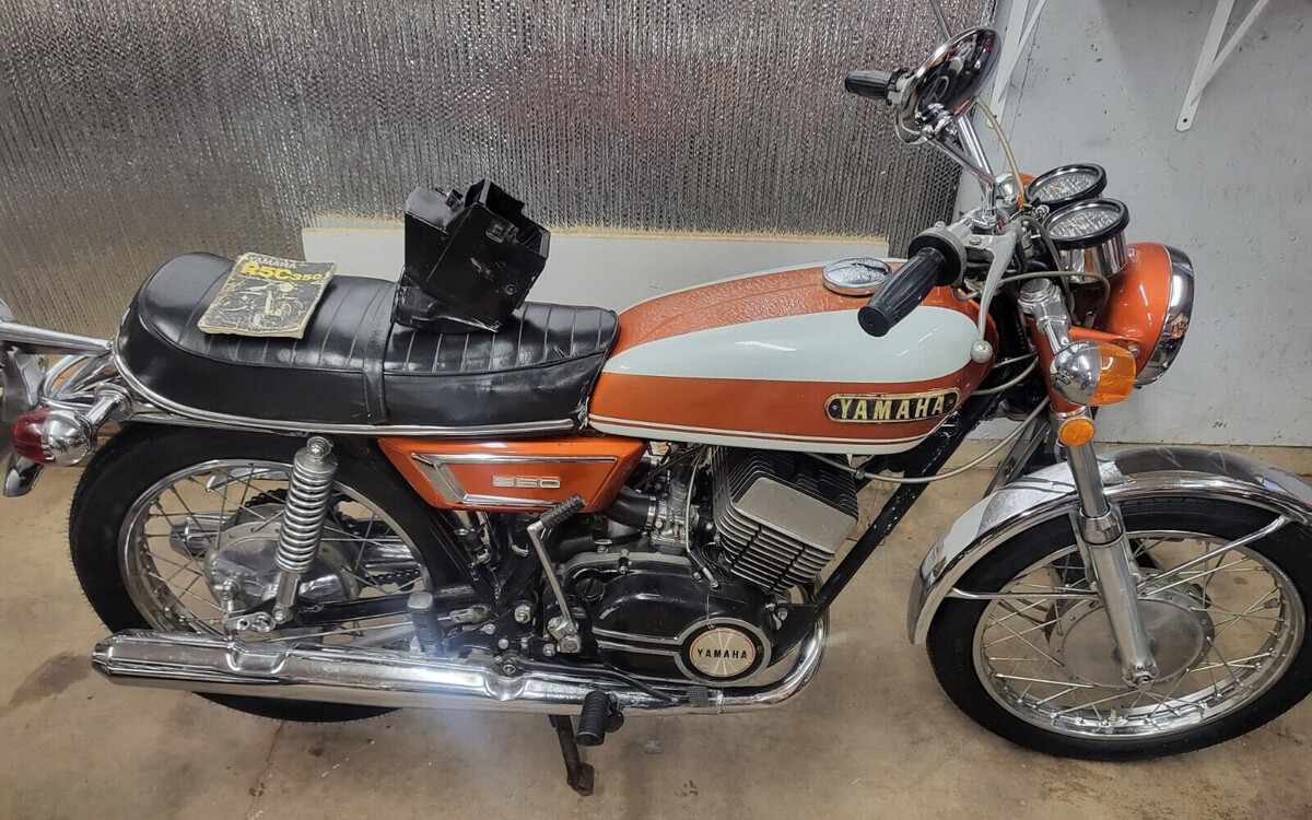 I still think of Yamaha as the king of two-stroke bikes from the 60s and 70s. Ok, Yamaha is one of the kings of two-stroke bikes from the 60s and 70s. The seller has this 1971 Yamaha R5B 350 listed here on eBay in Eau Claire, Wisconsin and I’m going to try to get through this without bidding on it. It’s at $2,650, there is no reserve, and shipping is only $250 back to my garage (yes, I looked).