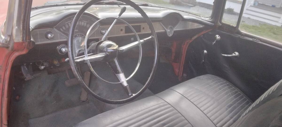 I graduated in 68, and the house next to my good friend sat a 56 2 door black and white. I knocked on the door and inquired about the car the lady said it belonged to her husband who passed away. She told me it hadn’t run in a while so we talked things over and said it’s yours for $75.00. Best car deal I ever had. The exhaust leaked and I wrapped a Hawaiian Punch can around it and 2 muffler clamps. Wish I still had it