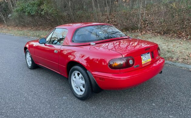 Mazda made the first-generation (NA) MX-5 Miata (Eunos in Japan) from 1989 for the 1990 model year until the end of 1997. Known as the “NA”, it was followed by the NB, NC, and lastly, the ND model, which is currently in production. This car looks like a low-mile trailer queen but it has 107,717 miles on it. Being in Pennsylvania, I expected to see rust but it looks rock solid, even underneath. With an average of just over 3,100 miles per year over the last 34 years, I’d guess it didn’t do much winter duty but we don’t know. It does have new all-season tires.