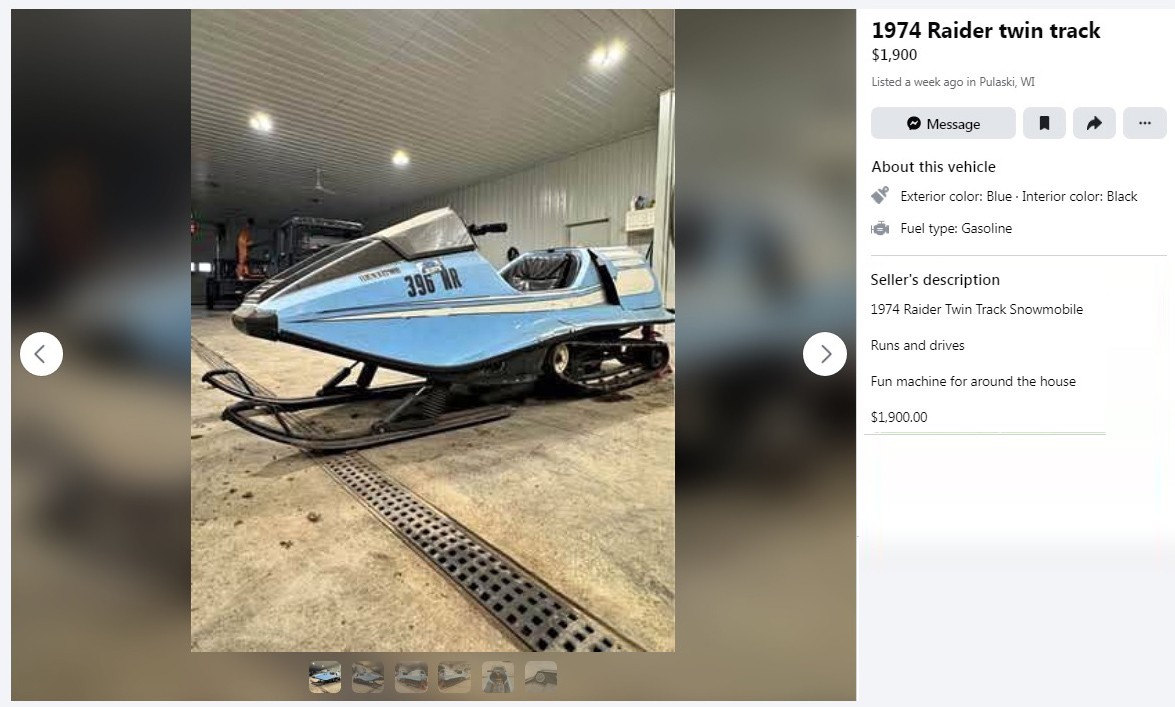 We’ve seen quite a few twin-track Raider snowmobiles here on Barn Finds over the last decade or so, and they’ve usually been the standard white color, other than maybe a Golden Eagle or two. This unusual, light blue-colored 1974 Raider Eagle is listed here on Facebook Marketplace in Pulaski, Wisconsin, and the seller is asking $1,900. Here is the original listing, and thanks to Lothar… of the Hill People for the twin-track tip!