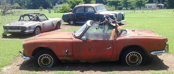 Looking at these beauties, I see a little potential. Our new pal Kenny, however, sees a whole lot of potential. He states that all of these cars run, but have not been started in years. While you contemplate that statement for a moment, I do have to say that the Triumphs may be the best choices in this deal. The 1978 model seen in the first picture needs a distributor, but Kenny reminds us that it does run. These later Triumph Spitfires were well sorted out by the time 1978 rolled around, and the dreaded swing axles of the previous generations had been redesigned into a tamer setup. If you haven’t driven a swing axle car in a high speed corner, you have never lived on the edge. Usually that’s where a car with this type of rear suspension would put you, because the tires lose traction as the axles lift up under load. They make an early Porsche 911 seem positively sedate at speed. Under the hood, the old engine had been bored out to 1,500 ccs of displacement by 1978, making the cars much more pleasant to drive.