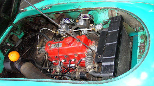 I have purchased items from this seller on eBay before (their auctions are easy to recognize due to the inclusion of an orange in most pictures) and have been happy with the quality of the items. Now he tells us that at 76 it’s time to let go of their British car collection (there is a TR3 and TR4A on eBay as well). The car appears to be quite original and has just been taken out of 27 years of storage (the seller has owned it for 26 years.