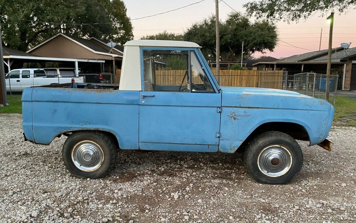 This cute little truck is a 1966 early production Ford Bronco Half Cab also known by the designation U14. The Bronco still sports its original paint except for the roof. The Bronco Half Cab is listed for sale here on eBay for a Buy It Now Price of $11,395. The seller has this truck listed for another 22 days so there is plenty of time to call the owner and ask questions. The Bronco is located in Rosenberg, Texas which is southwest of Houston, Texas.