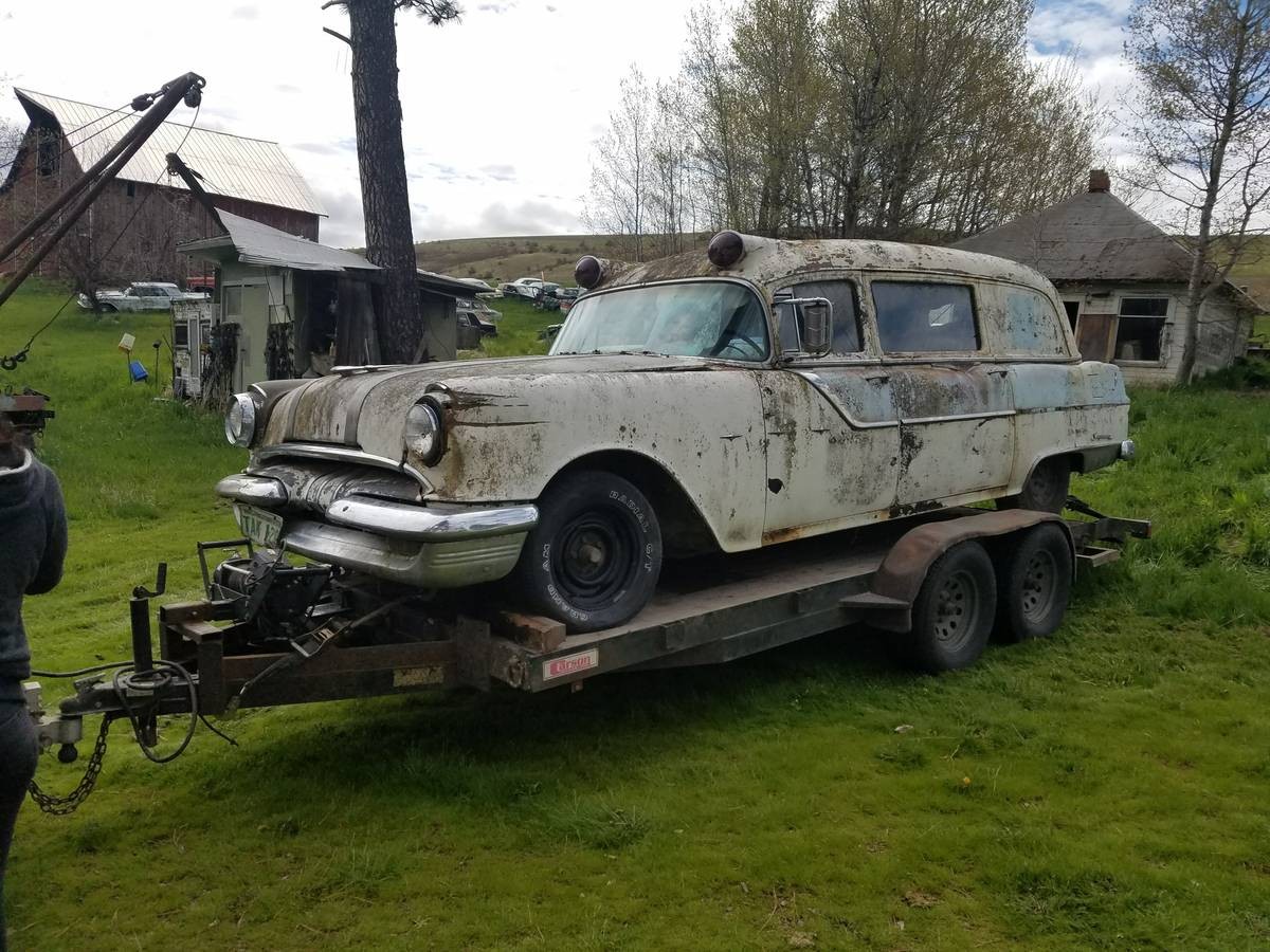 Jeff Lavery, leiniedude and DayDreamBeliever are correct. This is the same vehicle that appeared previously in BF. For the record, this is a 1955 Pontiac-Superior Ambulance. Made at Superior’s Kosciusko, MS plant. (Kosciusko is birthplace of Oprah Winfrey) Superior made these Pontiacs as a cheaper alternative to the Cadillac-Superior Ambulances and professional (funeral) cars made at their primary plant in Lima, OH. These do not sell for much running-restored. In this condition — a buyer’s market.