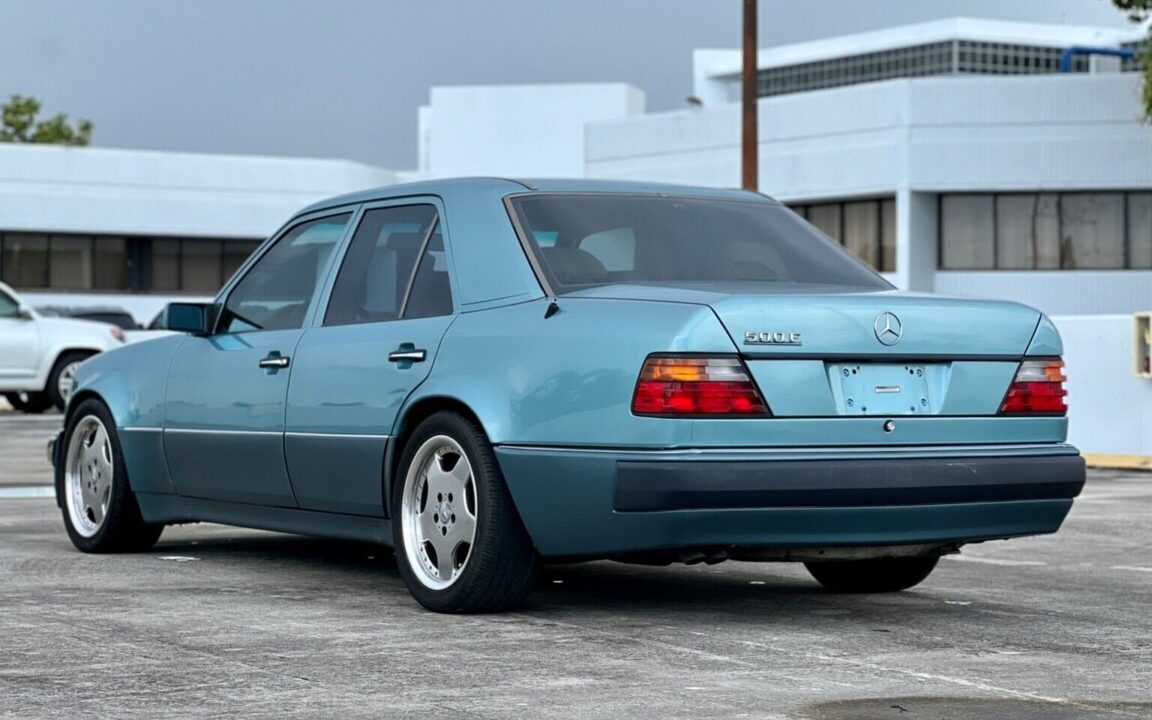 What makes this 500E interesting is the color. They all seem to come in either black or dark gray metallic. Not my favorite shade of green. Mercedes has a green called petrol green which ranks up there with the Porsche petrol blue. I think you meant this engine is a 5 liter and not 4 liter. The little brother 400E has the M119 4.2L engine that makes 268hp vs. 322hp. It is believed that Porsche did not do any development on the 500E. They were just contracted to build the car with Mercedes since the wider track had issues moving down the W124 assembly line. Porsche was struggling in the early 90’s and projects like the Mercedes and the Audi RS4 wagon helped keep the lights on. Porsche did however help with the development of the Audi and that car also shares some Porsche parts like the brakes and mirrors. The Mercedes did not.