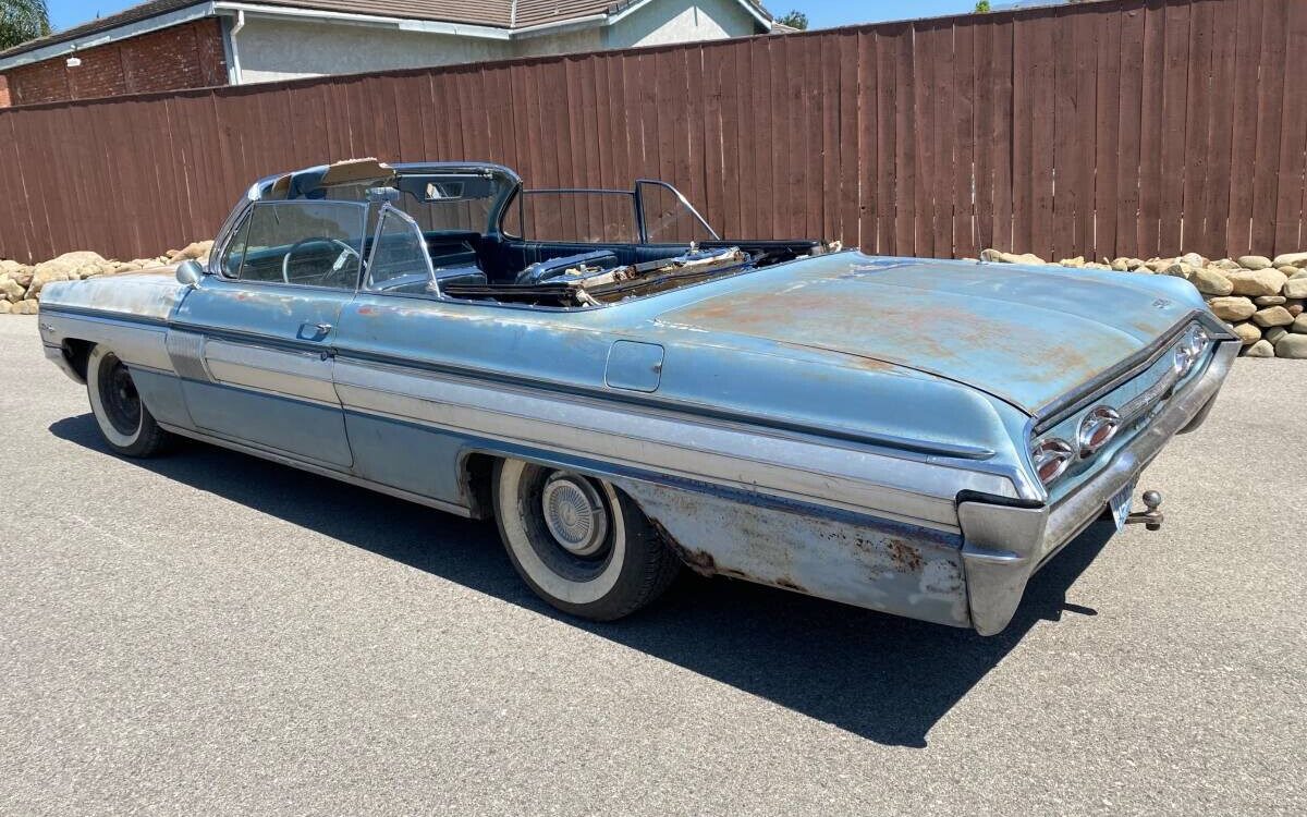 Well, at first glance it looks like the Star and the Fire have gone out of this 1962 Oldsmobile. It’s rough around the edges and looks like it has spent a lot of outdoor time in top-down mode. Regardless, a ’62 Starfire convertible, one of approximately 7K produced, was a substantial car in its day and is a desirable collectible, worthy of restoration, today. The trick, however, is starting out with the right example and that may not necessarily be the case with this Santa Paula, California resident. Let’s look it over and make a determination. This seemingly full-time, top-down convertible is available, here on craigslist for $9,500.