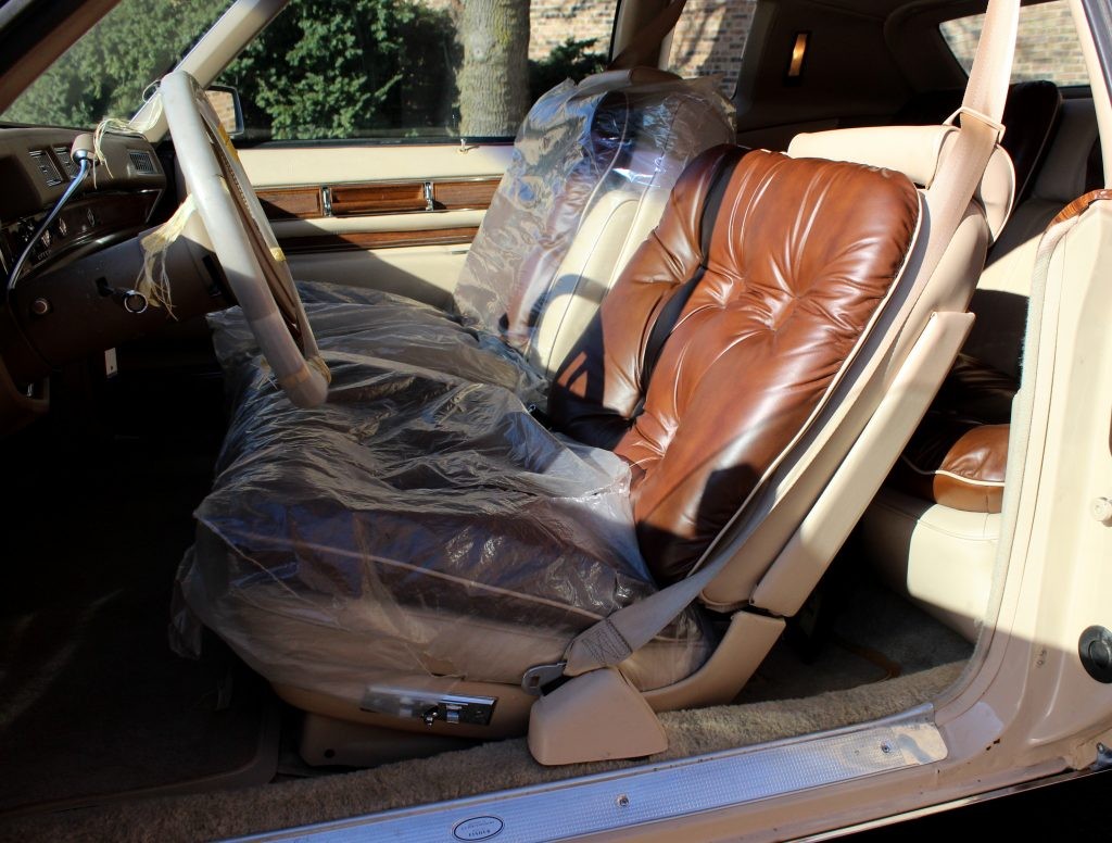 The plastic covering the seats and the steering wheel is still there on one of the cars. These seats are made of soft, supple Sierra Grain leather with two-tone Antique Medium Saddle and Antique Yellow interior. The seats have the luxury and the comfort of Cadillac Contoured Pillow-Style seating with dual comfort front seats, power seats, and the optional power passenger recliner.