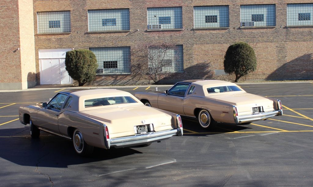 I’ve often wondered, wouldn’t it be nice to go out and buy two new identical cars? Drive one into the ground if necessary, but pamper the other one and preserve it, driving it gently and very little. Well, this is a story of a guy buying two identical 1978 Cadillac Eldorado Custom Biarritz Classic, except he decided not to drive either one of them. The cars appear to be identical and the mileage of the two cars is 278 and 206 miles.