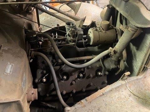 Going back to this example, we see that sixty years of storage wasn’t kind to the car. Surface rust covers every square inch of metal and the top and trim didn’t escape nature’s wrath either. Yet the car is completely original from what we can see in the pictures. It still wears its original wheels which indicates that the mechanical brakes are still there. Under the hood, we can see a correct for-the-year Flathead V-8 complete with possibly the original spark plug wires. The only things missing are the air cleaner and the sheet metal around the spare tire at the rear of the car.