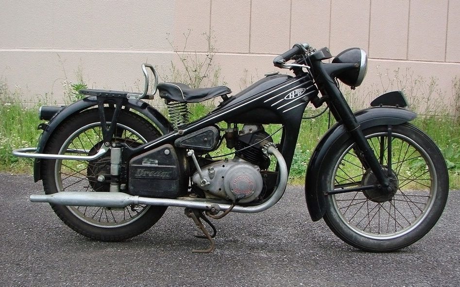This bike is pretty cool. These people are off their nut asking these prices for vintage bikes, but that aside, it really was an innovative bike for the early 50’s. OHV, multi disc, hand operated clutch, telescoping forks, I bet it could go the speed limit. Always liked those backwards brake and clutch levers. No cable in the way, seems like a better way to do it. I’m a big fan of the “square” Dreams, but would like this just as well. $10g’s, you got to be kidding. Just like classic cars today, leaving the little guy behind.